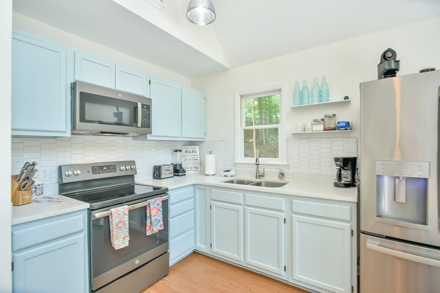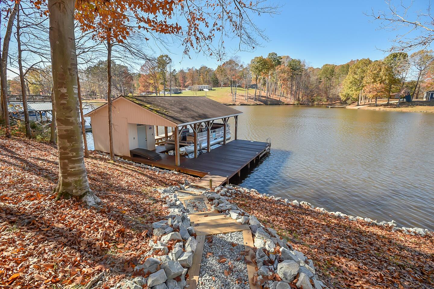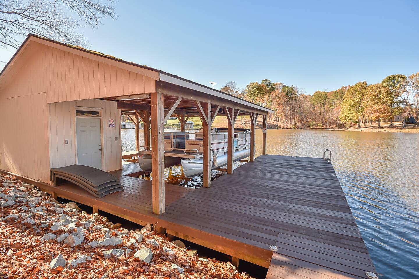The most adorable A-frame cottage on Hyco Lake! This Hidden Haven has everything your family needs to make memories to last a lifetime. A double slip boathouse and dock made for swimming! Two bedrooms on the main level with a loft upstairs that has two full beds! Totally renovated with all new everything! Feel free to use our kayak and stand-up paddleboard! A high-end firepit was recently installed. Steps lead from the back deck to the firepit. A half-bathroom was also added in February 2021.