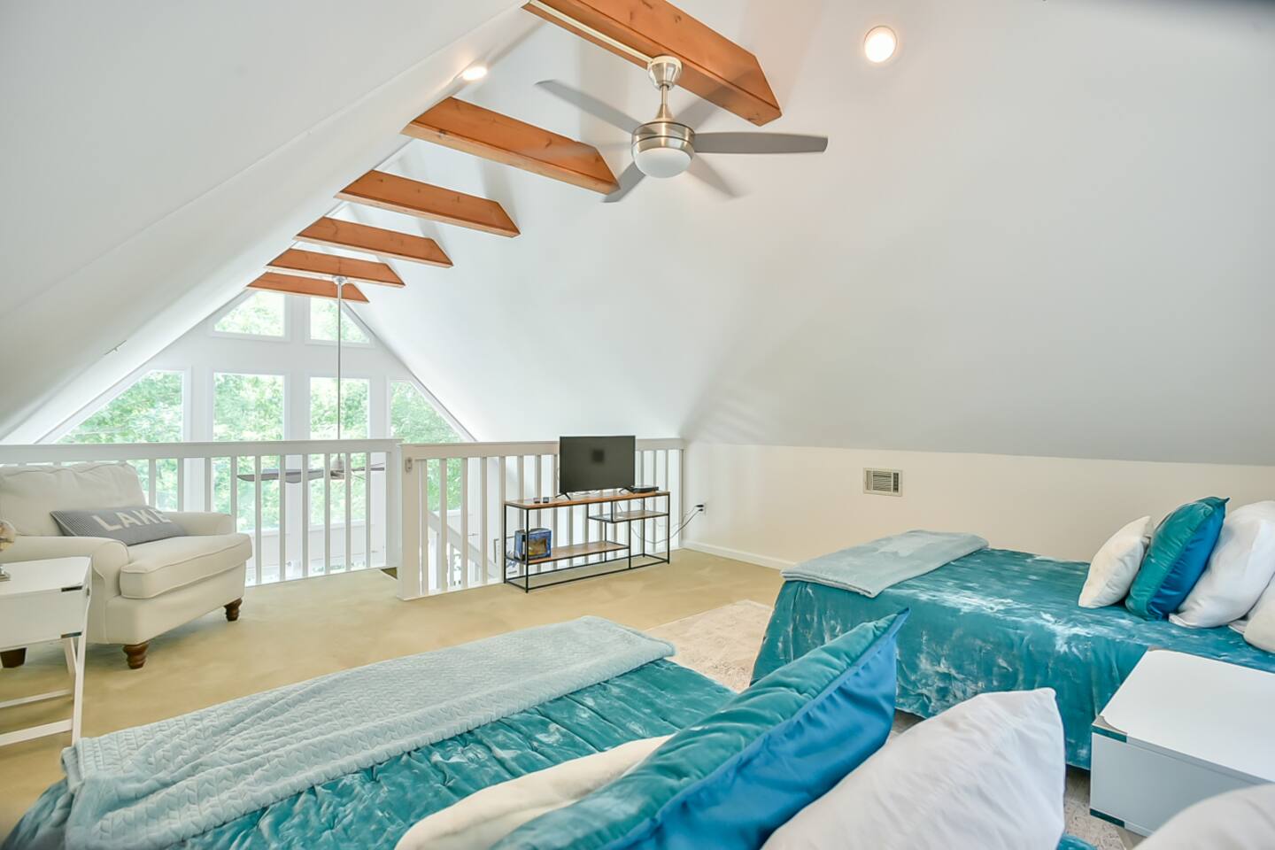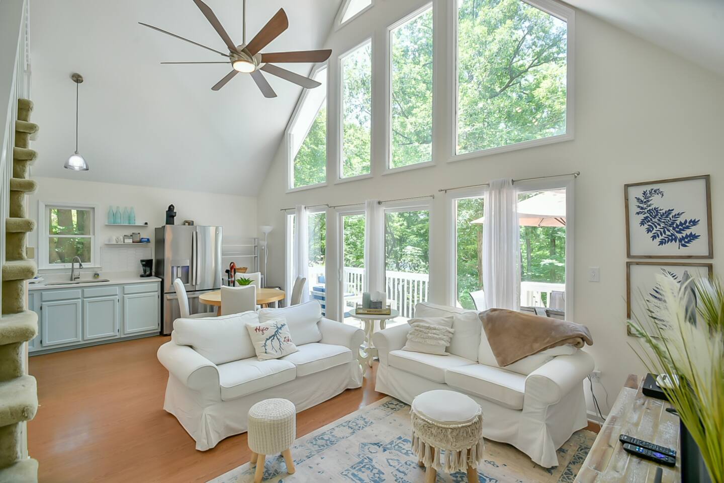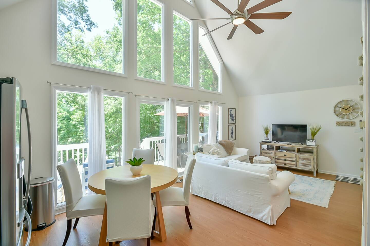 The most adorable A-frame cottage on Hyco Lake! This Hidden Haven has everything your family needs to make memories to last a lifetime. A double slip boathouse and dock made for swimming! Two bedrooms on the main level with a loft upstairs that has two full beds! Totally renovated with all new everything! Feel free to use our kayak and stand-up paddleboard! A high-end firepit was recently installed. Steps lead from the back deck to the firepit. A half-bathroom was also added in February 2021.