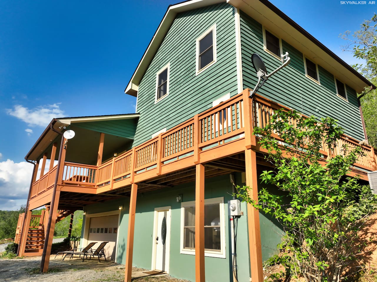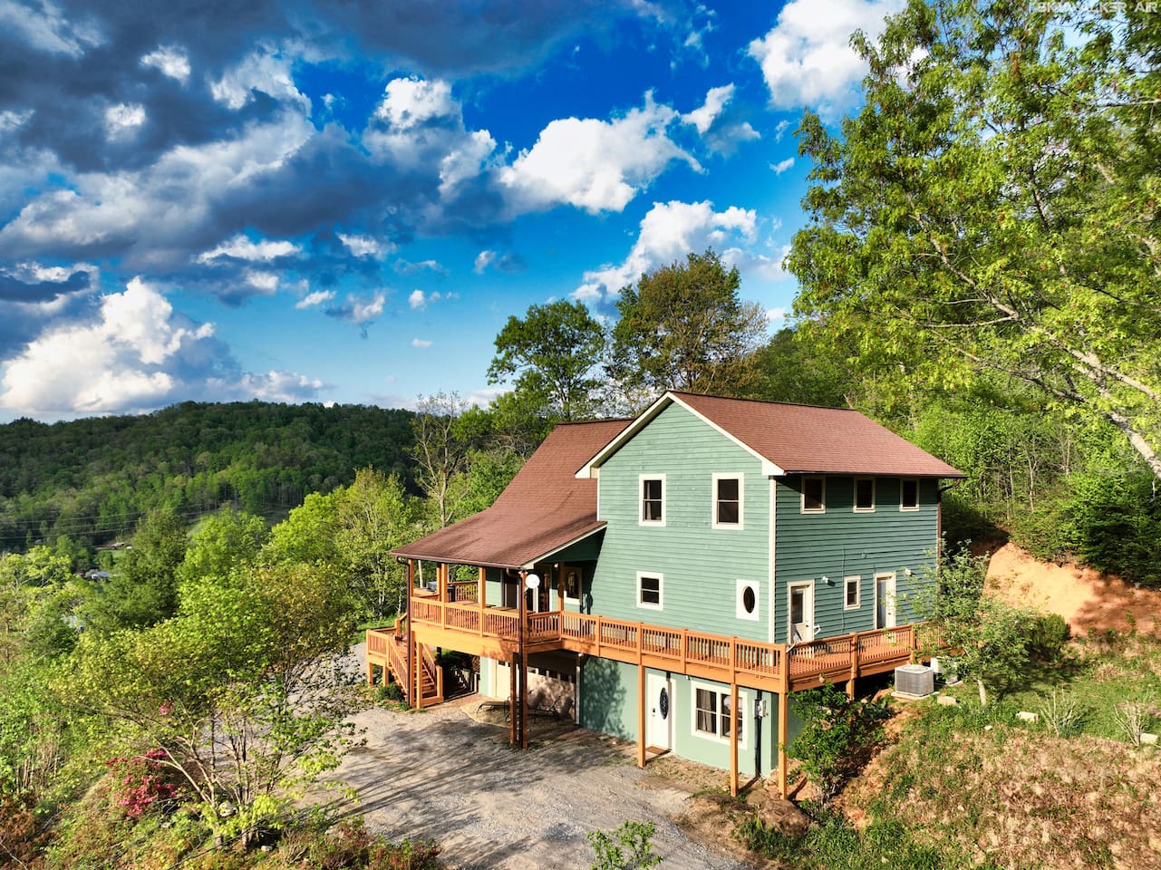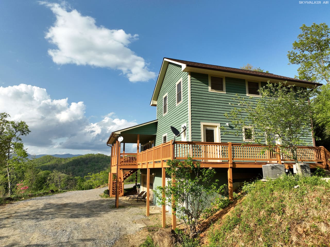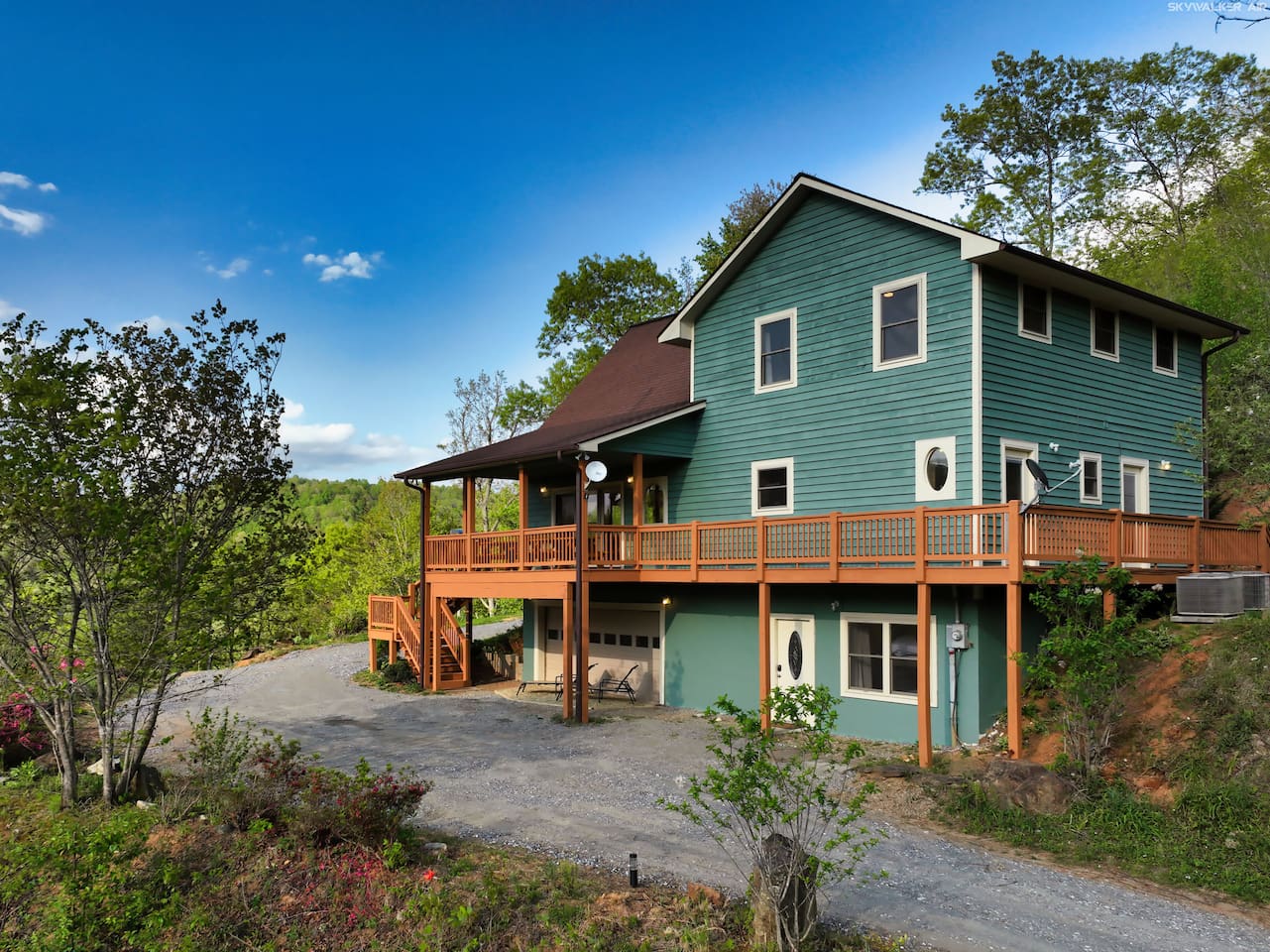 This spacious home features 4 spacious bedrooms, 3.5 baths, a modern kitchen, 2 living rooms, a dining area for 12+, and a full game room with ping-pong, pool, poker table, and bar. Enjoy amenities like A/C, ceiling fans, vaulted ceilings, washer/dryer, and dishwasher. Each morning greets you with a new, breathtaking view of the Smoky Mountains—right from the comfort of your home. Included are smart TVs with Netflix and other streaming apps, wifi and plenty of games and books to play. Outdoors you will enjoy a beautiful deck with comfortable adirondack chairs, a large grill, picnic tables, a fire pit, a hot-tub and a wrap around deck. Sliding doors open to the deck from the great room as well as an access point from the master bedroom. Find a fully stocked kitchen complete with a full set of pots and pans, kitchen utensils, baking pans and baking dishes. Included is a toaster, microwave, and all the plates and utensils you can use. For hikers and bikers, hundreds of trails for all ability levels await. The Western Carolina University trail system is about 6 minutes away. Fly fishing is very popular in the Tuckasegee River. The Locust Creek Access Area is 10 minutes away. The Dillsboro river company and tubing adventures are 10 minutes away! For the golfer in the family, several exceptional golf courses welcome visitors, including People’s Golf only minutes away. For those looking for a river rafting adventure or just want to take a dip, the Dillsboro River Company and Smoky Mountain River Adventures charter trips only 10 minutes away. Access to the river for fishing is only 5 minutes down the road! Come join us for a weekend or a few weeks at this incredible home in an amazing area of our country.
