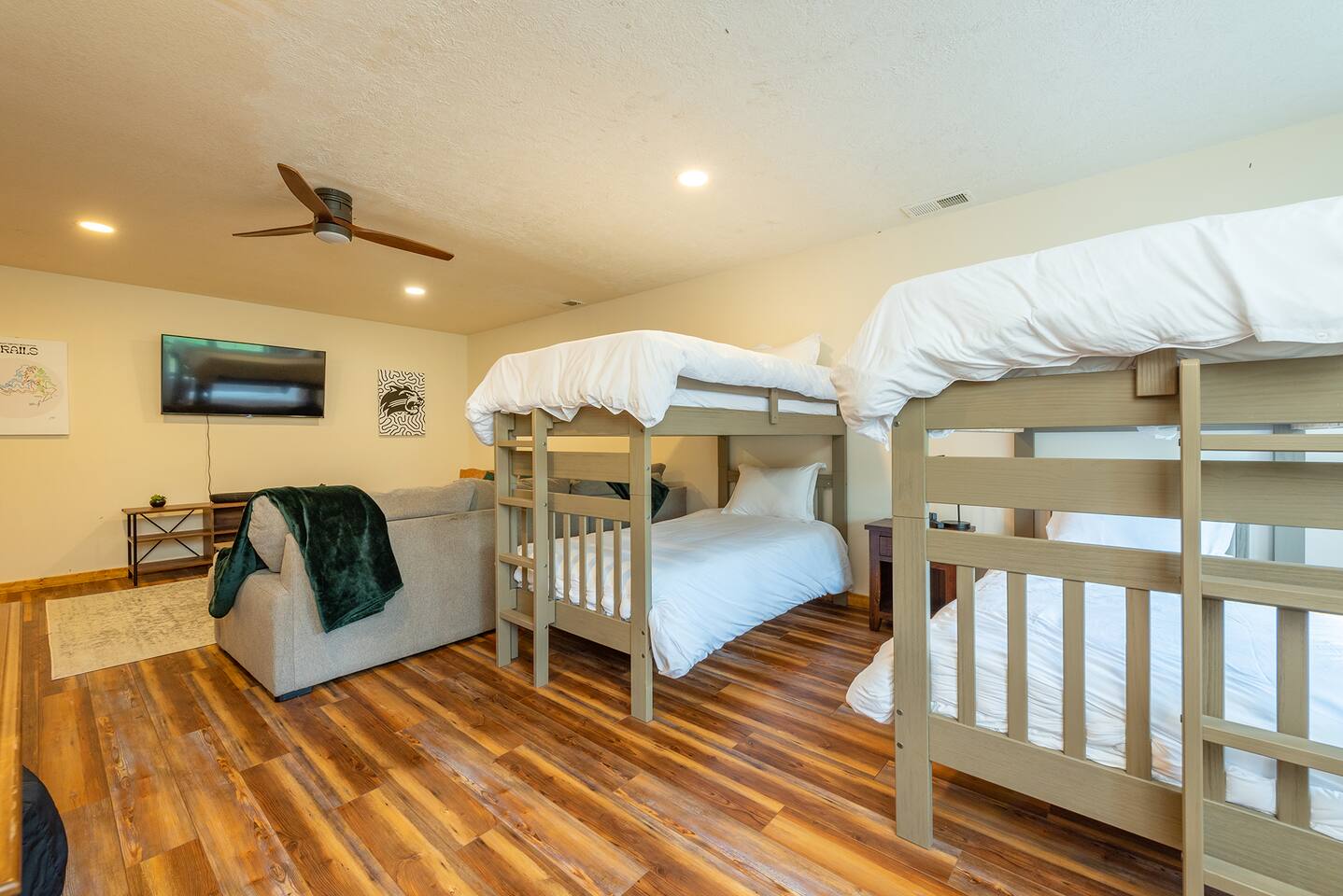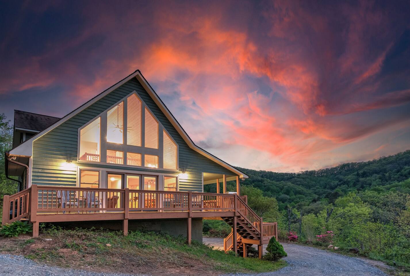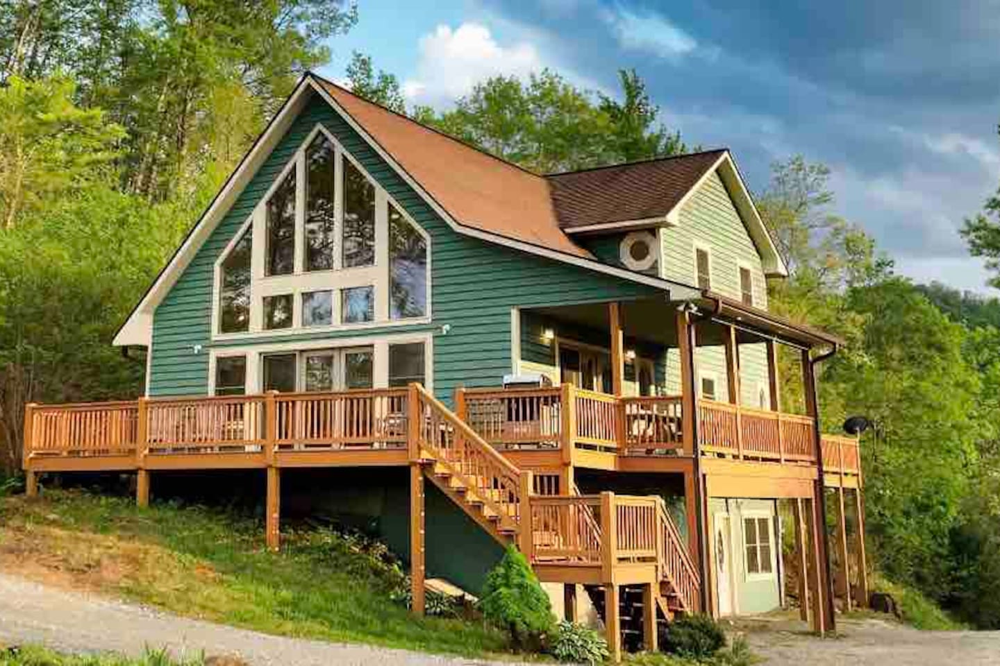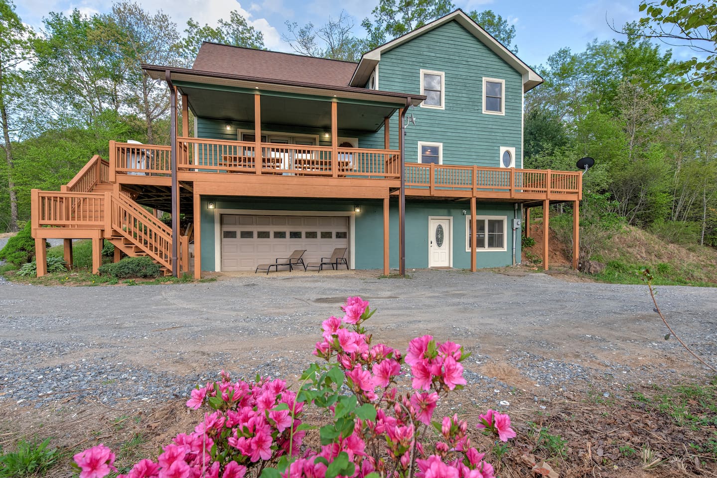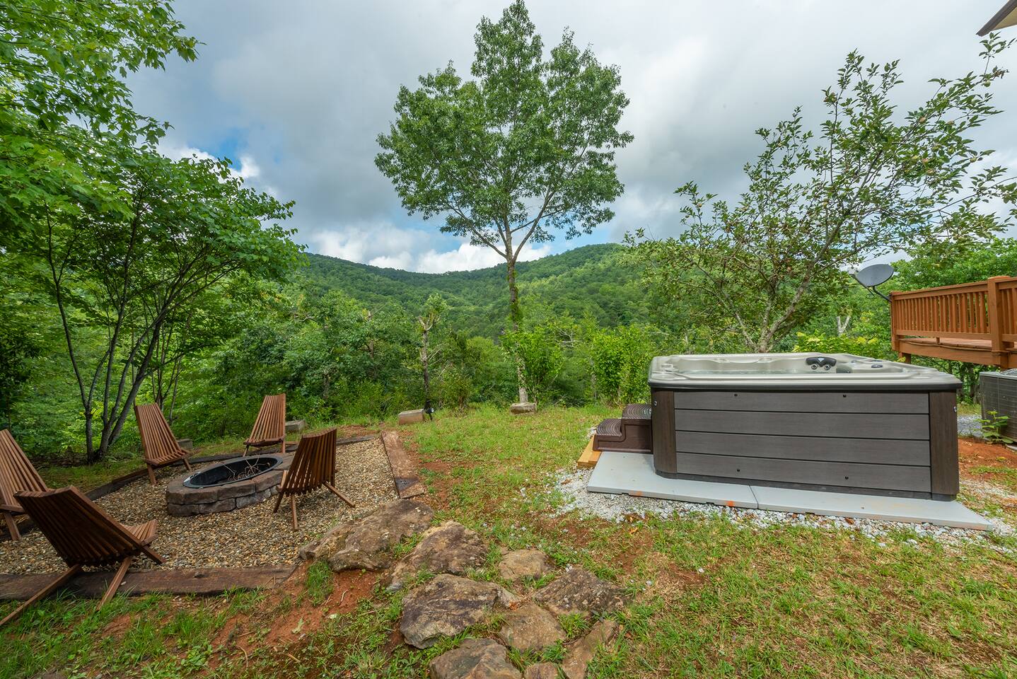 This spacious home features 4 spacious bedrooms, 3.5 baths, a modern kitchen, 2 living rooms, a dining area for 12+, and a full game room with ping-pong, pool, poker table, and bar. Enjoy amenities like A/C, ceiling fans, vaulted ceilings, washer/dryer, and dishwasher. Each morning greets you with a new, breathtaking view of the Smoky Mountains—right from the comfort of your home. Included are smart TVs with Netflix and other streaming apps, wifi and plenty of games and books to play. Outdoors you will enjoy a beautiful deck with comfortable adirondack chairs, a large grill, picnic tables, a fire pit, a hot-tub and a wrap around deck. Sliding doors open to the deck from the great room as well as an access point from the master bedroom. Find a fully stocked kitchen complete with a full set of pots and pans, kitchen utensils, baking pans and baking dishes. Included is a toaster, microwave, and all the plates and utensils you can use. For hikers and bikers, hundreds of trails for all ability levels await. The Western Carolina University trail system is about 6 minutes away. Fly fishing is very popular in the Tuckasegee River. The Locust Creek Access Area is 10 minutes away. The Dillsboro river company and tubing adventures are 10 minutes away! For the golfer in the family, several exceptional golf courses welcome visitors, including People’s Golf only minutes away. For those looking for a river rafting adventure or just want to take a dip, the Dillsboro River Company and Smoky Mountain River Adventures charter trips only 10 minutes away. Access to the river for fishing is only 5 minutes down the road! Come join us for a weekend or a few weeks at this incredible home in an amazing area of our country.