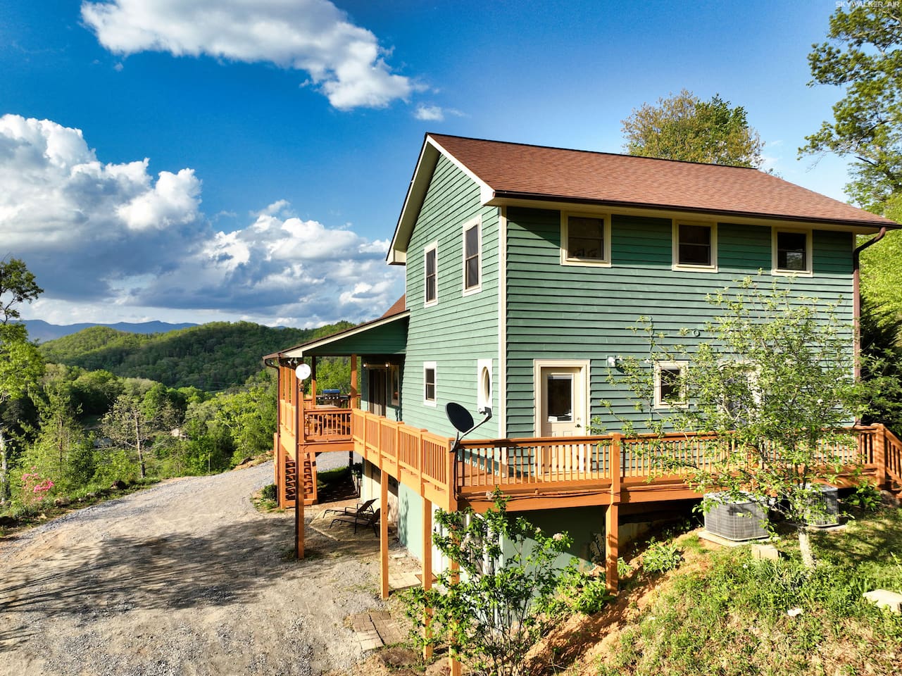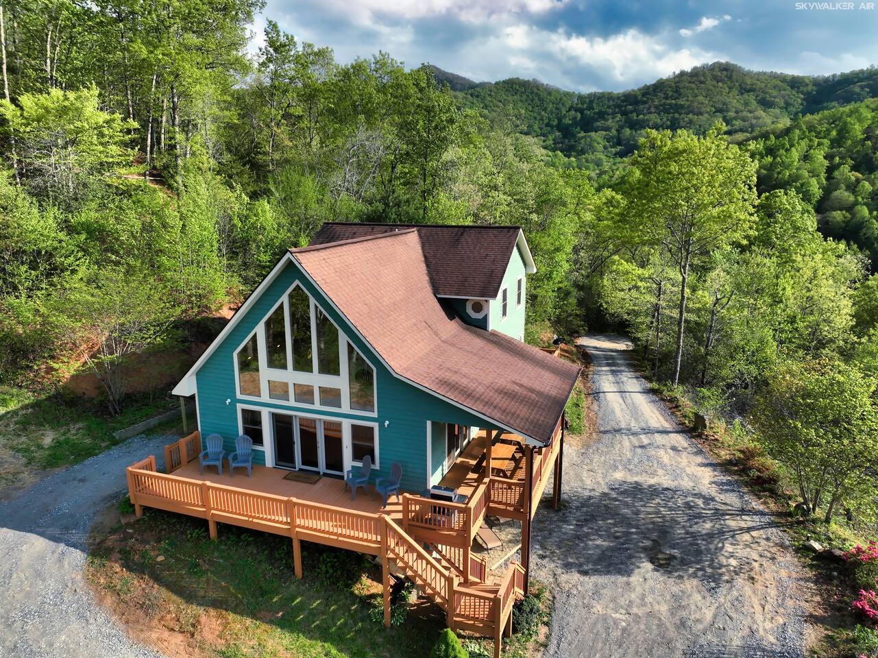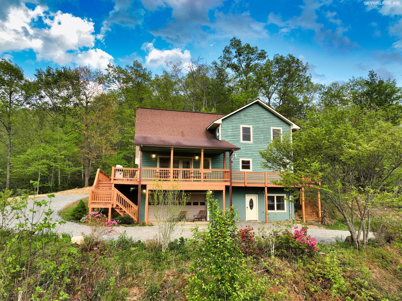 Located 2,700 feet up in the Blue Ridge Mountains, this cozy cabin offers stunning 270-degree views of five scenic mountain ranges. Perfect for remote work or a relaxing escape—just minutes from Harrah’s Casino, waterfalls, hiking trails, and only 8 minutes from Western Carolina University. Less than an hour from Asheville, with the Great Smoky Mountains and Pisgah National Forest nearby. Soak in the hot tub and enjoy the peace!