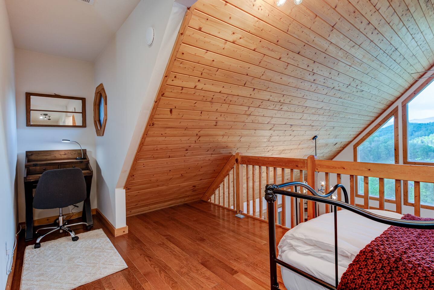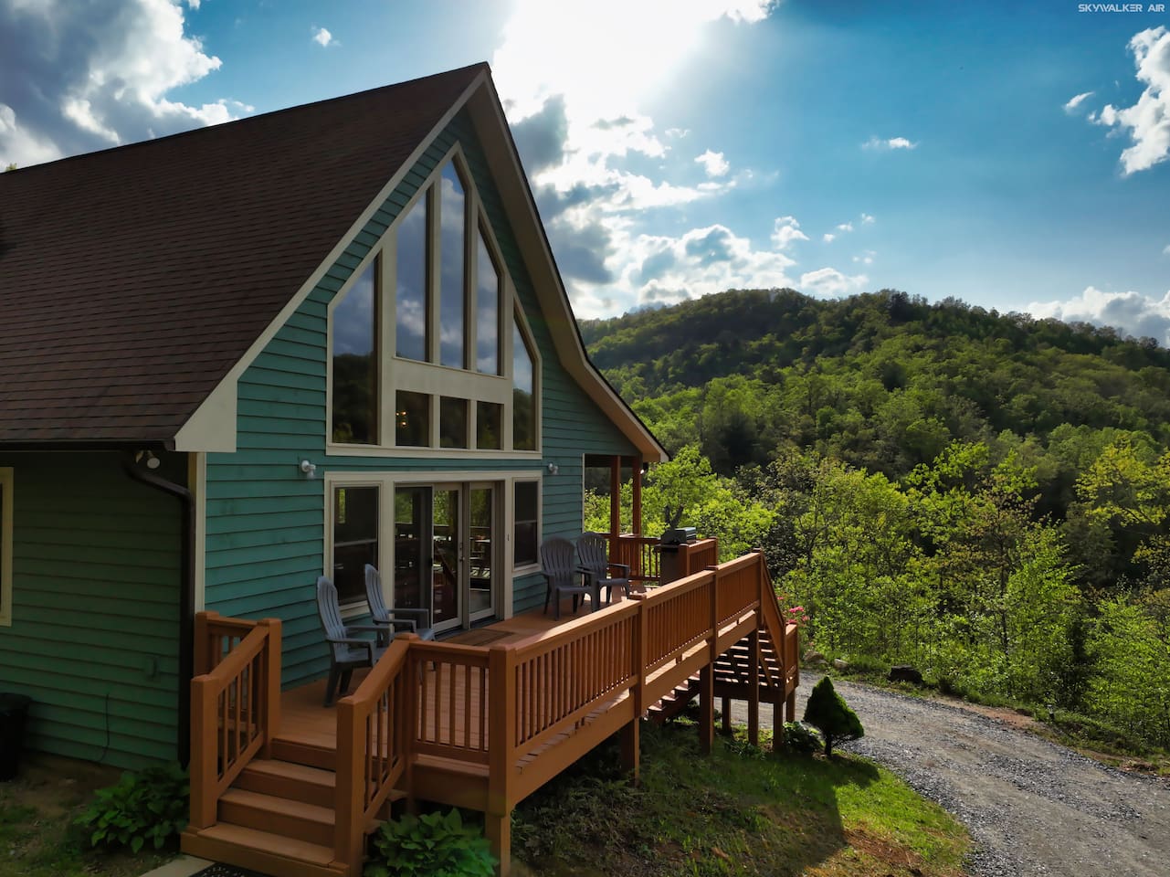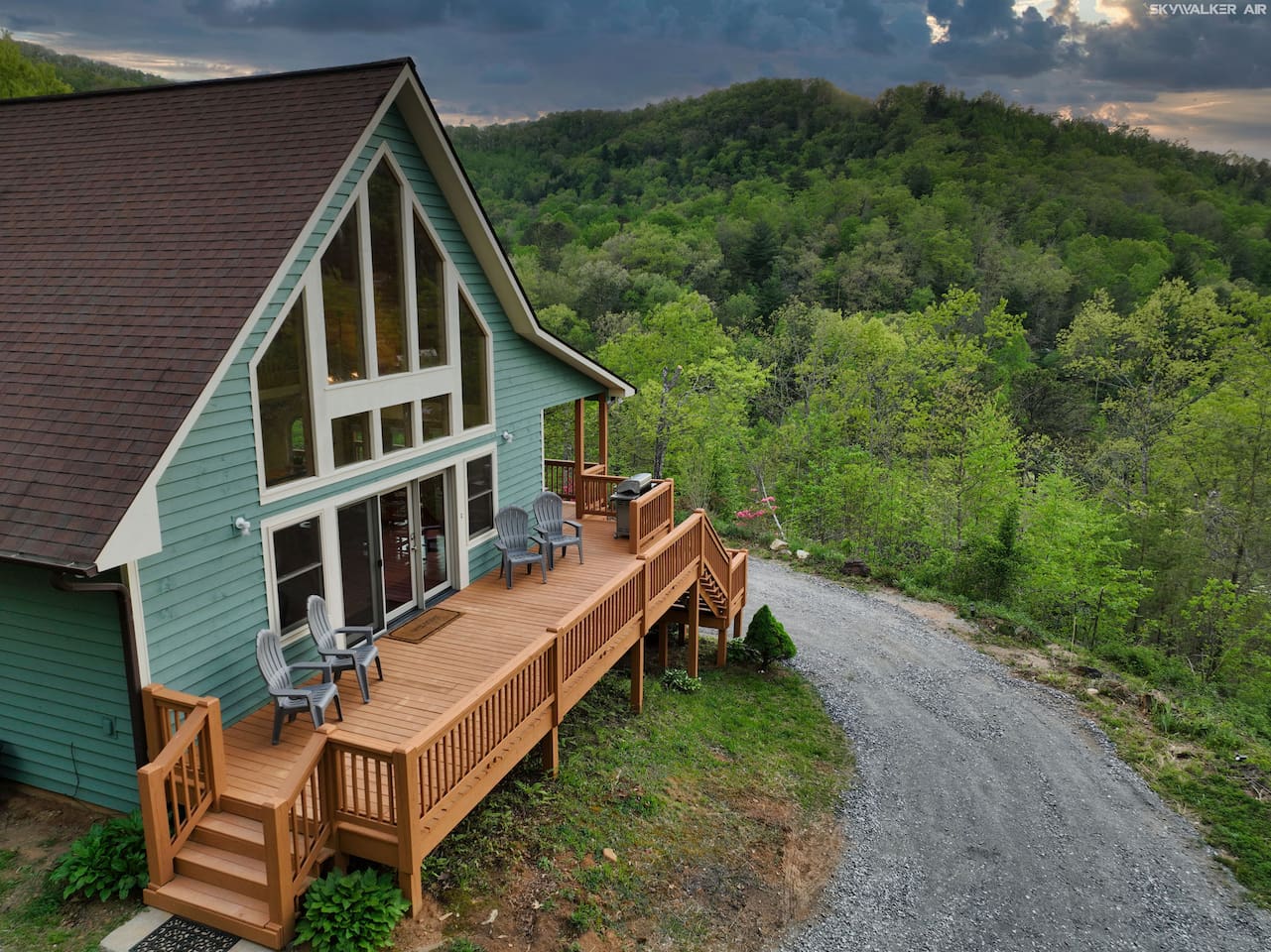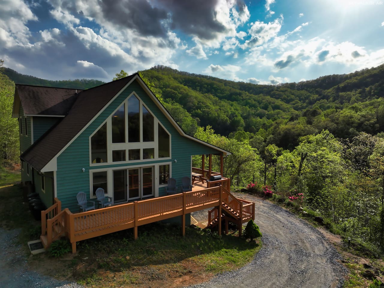 Located 2,700 feet up in the Blue Ridge Mountains, this cozy cabin offers stunning 270-degree views of five scenic mountain ranges. Perfect for remote work or a relaxing escape—just minutes from Harrah’s Casino, waterfalls, hiking trails, and only 8 minutes from Western Carolina University. Less than an hour from Asheville, with the Great Smoky Mountains and Pisgah National Forest nearby. Soak in the hot tub and enjoy the peace!