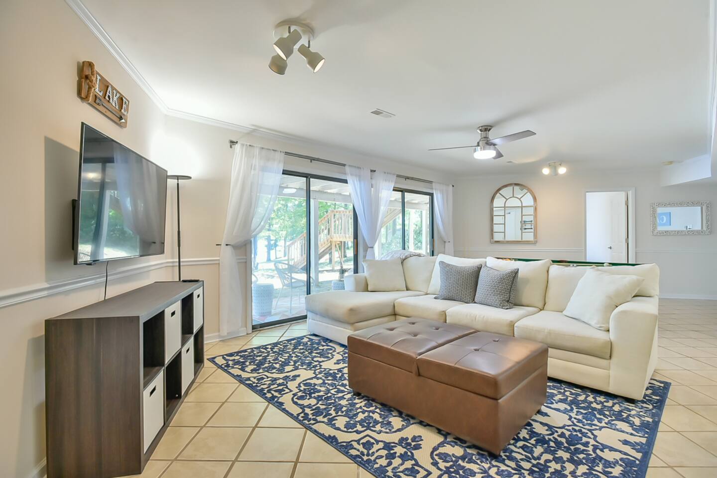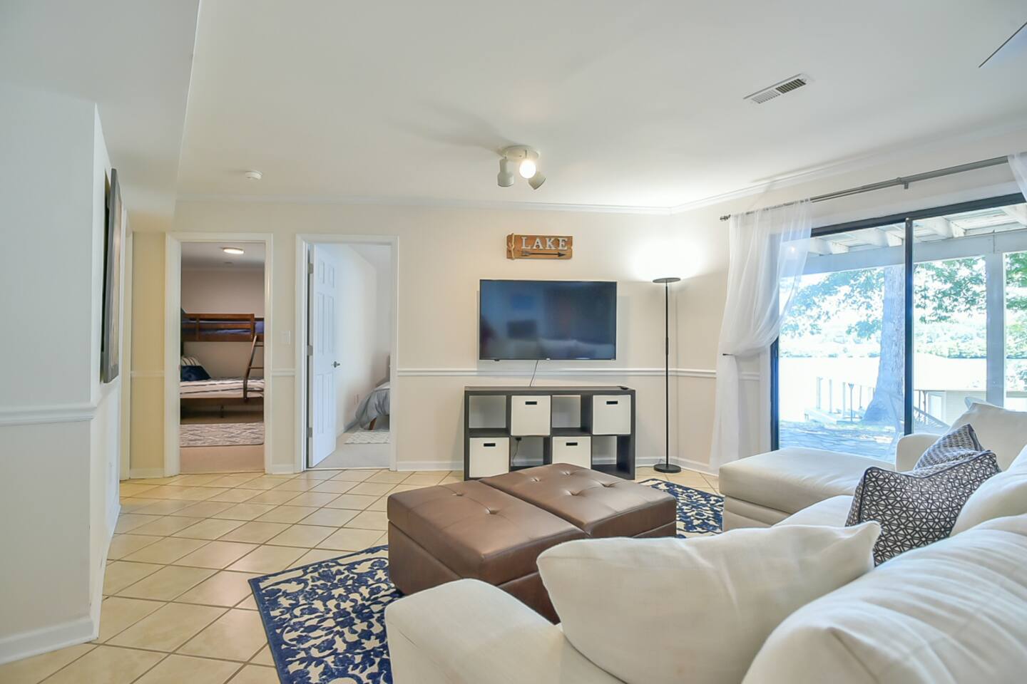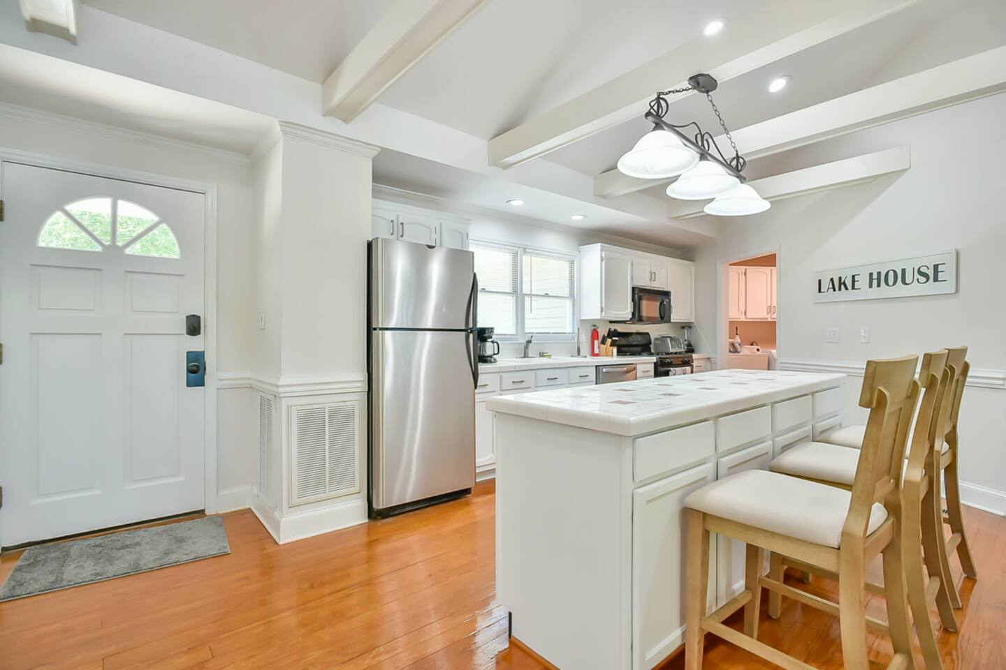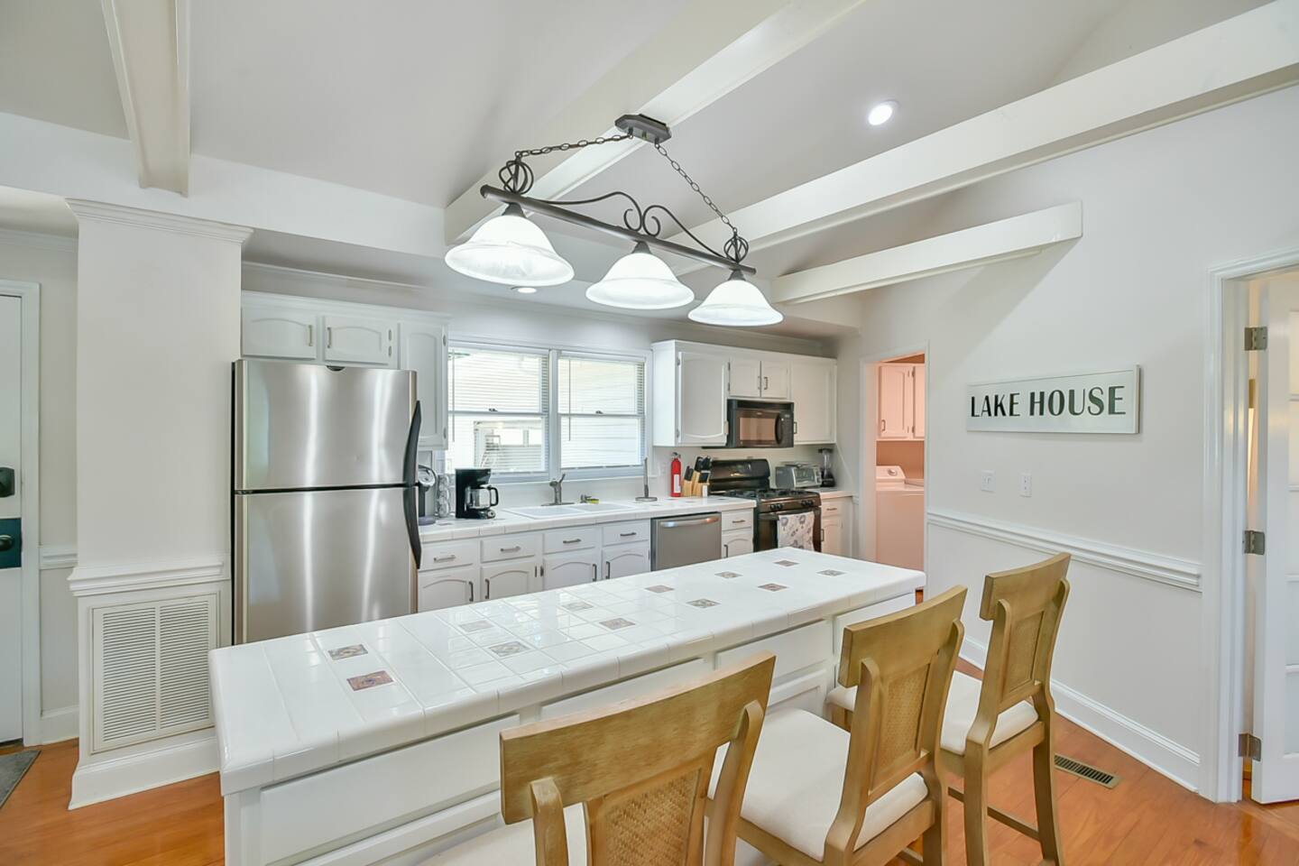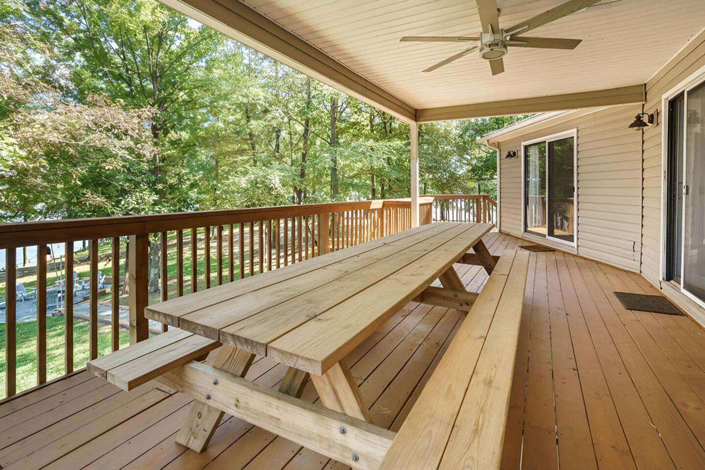 NEW Caesars Virginia Casino in Danville, and other area attractions nearby! Life is better at the lake!!! Our Hyco Home is located in the most convenient part of Hyco Lake. The house is right across the water from the Hyco Lake Marina and the camp-ground. In June 2021 we remodeled almost every aspect of the home starting with the kitchens and bathrooms and down to the door hinges and outlet covers. Every design decision was based on what would provide our guests the best possible experience. We brightened up the home with new lighting, painting, and opened up the home anyway we could. The home was designed by remote workers to be for remote work. Along with high-speed internet (only a few homes on the lake have this fast of the internet), 3 bedrooms have private desks and there is plenty of room in the common areas to work. We brought in high-quality furniture that is both comfortable and stylish. Most of the beds are gel memory foam. We upgraded to the best possible internet (speeds up to 1000 Mbit/sec). We will continue to upgrade the home over time as well! The home is very spacious with 6 bedrooms and 3 full bathrooms. **NOTE: There is no refund if the jacuzzi is not working. We will try our best to make sure it is working and in good condition at all times but are NOT responsible for a refund if it isn't working or is offline for repairs or maintenance. There is plenty of room to sleep comfortably. Hyco Haven has two floors that both have large living rooms and patios. The top floor has two king master bedrooms. The main master has an attached private bathroom with a double vanity, shower, and jacuzzi tub. There is a desk in the master, a 42" tv, and a large walk-in closet. The second master that we call the "auxiliary master" has a king bed, a reading nook, and an attached bathroom that has a shower tub. The main area has a remodeled kitchen and island with 4 bar stools. The 6 person dining room table is right off the island The main floor is attached to the garage. For the time being, guests are not permitted to use the garage. Each upstairs bedroom and the main area have both sheer and black-out curtains. Both master bedrooms, as well as the living space, have easy sliding door access to the spacious back deck. The back deck has a covered patio with a large 10 person picnic table. Right off the back deck is the grilling patio with a grill and another table with seating. The downstairs area is a fully-equipped entertainment zone with a pool table, a spacious TV area with a sectional couch, and a large 55-inch TV. For added convenience, a bathroom is located just steps away. Four bedrooms surround the downstairs living area. Three of the bedrooms have queen beds. Two of them have a desk. Two of them also have sliding doors that walk out to the basement patio and have sheer as well as black-out curtains. The fourth bedroom has a bunk-bed with a full-on the bottom and twin bed on the top. There are also two chairs that can be pulled out and turned into queen beds. Here's a quick summary of the sleeping arrangements: Upstairs: Master Bedroom 1: King bed Auxiliary Master Bedroom 2: King bed Downstairs: Bedroom 3: Queen bed Bedroom 4: Queen bed Bedroom 5: Queen bed + pull-out twin bed Bedroom 6: Bunk bed (full bed on the bottom + twin on the top) Common Area: Pull-out twin bed All the lake house essentials are covered! Linens and bath/lake towels are included. Washer/dryer units in the laundry room with soap and dryer sheets. The dock area has a newly renovated bar area with four bar stools and a tv. We provide 2 paddle-boards with paddles in addition to two kayaks. We provide assorted life jackets but do not guarantee we have perfect sizes for every single group of guests. The home is a straight-shot from both Roxboro (15-20) minutes away) and Danville (about 20-25 mins). Both of which have several restaurant and grocery store options. Hyco Lake is close to the triangle area (Raleigh, Durham, and Chapel Hill). Also close to the NEW Caesars Virginia Casino in Danville. The road leading to the house is completely paved (this is a rarity on Hyco). The mural is gone due to a recent storm. The dock is completely repaired.