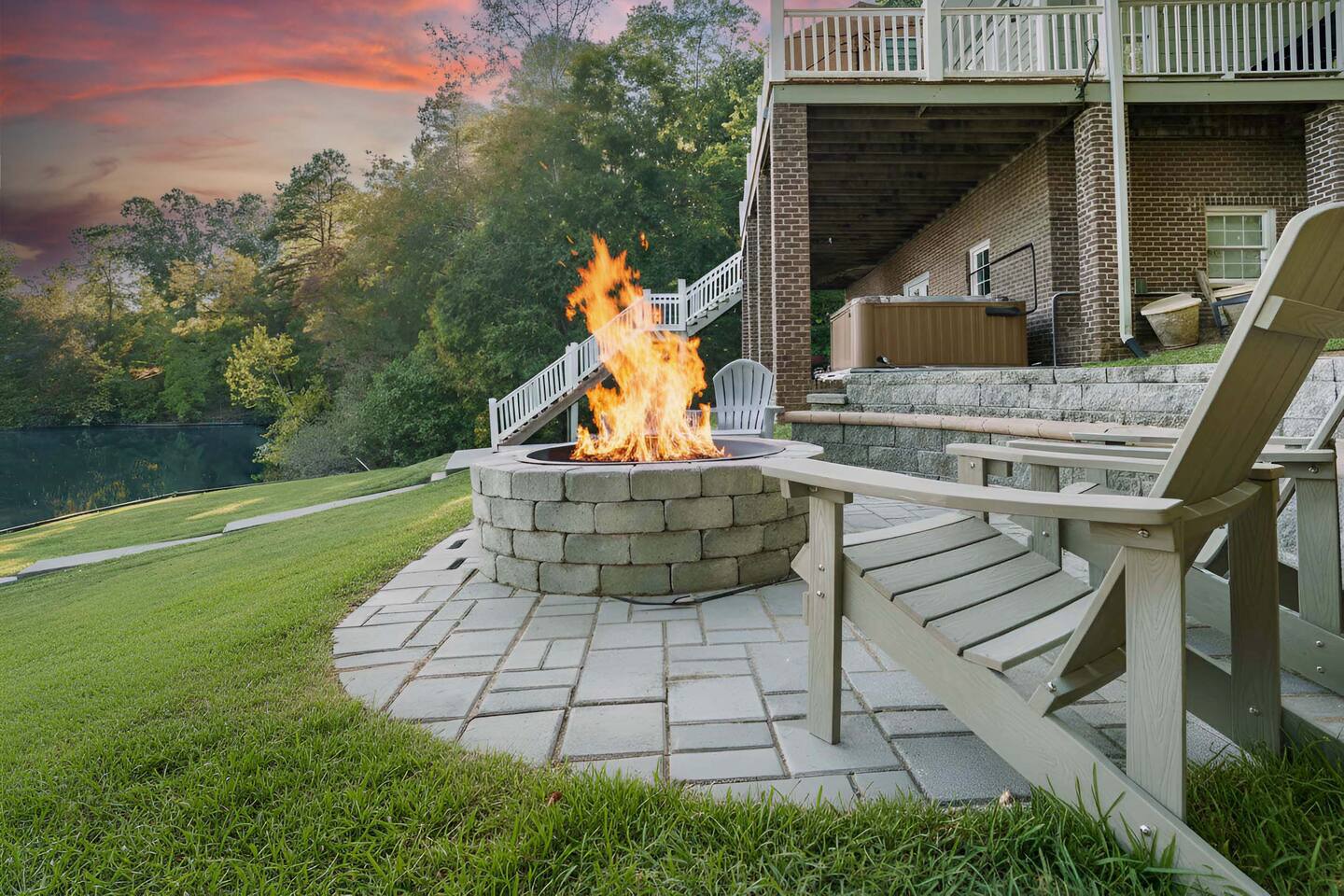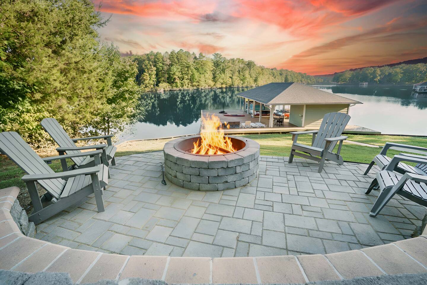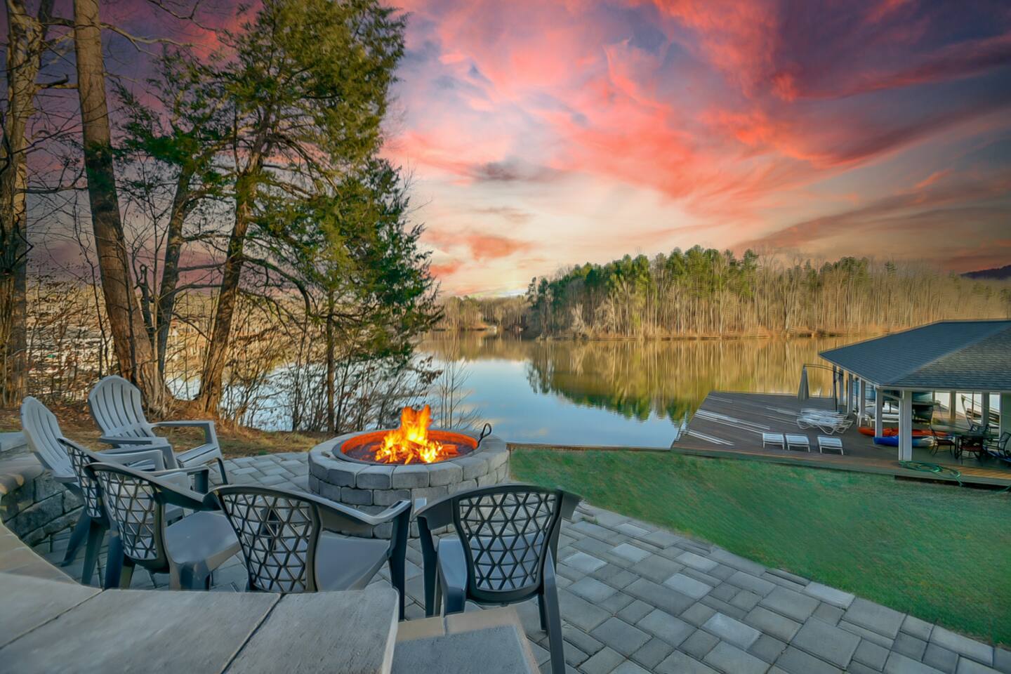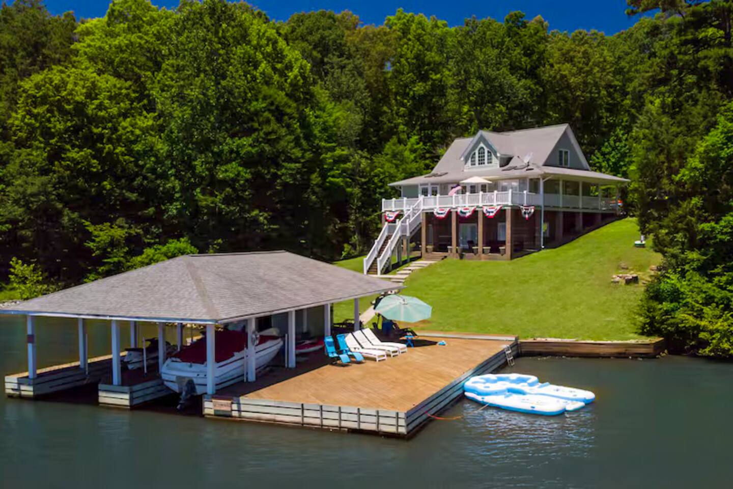 LAKE SAFETY RULES: • NO jumping or diving off the dock • Use of the water toys/activities is at the guest's own risk and discretion HOT TUB: There should be an expectation that the hot tub will be offline from Memorial Day to Labor Day If the hot tub is undergoing maintenance or repairs and is unavailable during your stay, there are no discounts or refunds. We will do our best to make it available in the non-summer months, but there are no guarantees. Please note that in the event we need to drain the hot tub after your stay, there will be a fee of $350 to cover the cost of maintenance and cleaning. We strive to keep our hot tubs in excellent condition for all of our guests to enjoy, and we appreciate your understanding and cooperation in keeping them in top shape. No glass in or near the hot tub or pool. If there are any remnants of glass, guests will be charged a $2,000 fee. If guests drain the hot tub, a $1,000 fee will be charged. Guests will also be held liable for any damages resulting from this action. Note: The lawn service provider may come to take care of the lawn during your stay. Discover privacy and tranquility at our lakeside retreat. Enjoy the newly installed fire-pit (not pictured here) for cozy evenings under the stars. Please note, the floating island pictured is not guaranteed. Swim, kayak, fish, and relax! PETS: • We allow a maximum of two (2) pets not weighing more than 50 lbs. • Pets are not allowed on the furniture. • Pets must be supervised at all times. • Pets must be declared upon reservation The lawn team comes on Thursdays. Use of the kayaks, paddle-boards, and other water toys is at guests' own risk and liability. You are welcome to rent the boat, but it is not required. If you choose not to rent it, the Hyco Lake Boat Rentals crew might need to come and take the boat from the dock to other renters. Large Hyco Home is close to Virginia International Raceway, Hyco Marina, Tunnel Creek Vineyards, Jibtopia, Bar 119, Roxboro Country Club, and other area attractions. Quiet time is between 10 pm and 6 am. Please do not play outside music and keep noise to a minimum in order to respect our neighbors. Firewood are guaranteed during winter only Bundles are sold at Hyco Lake Marina The primary renter must be 25