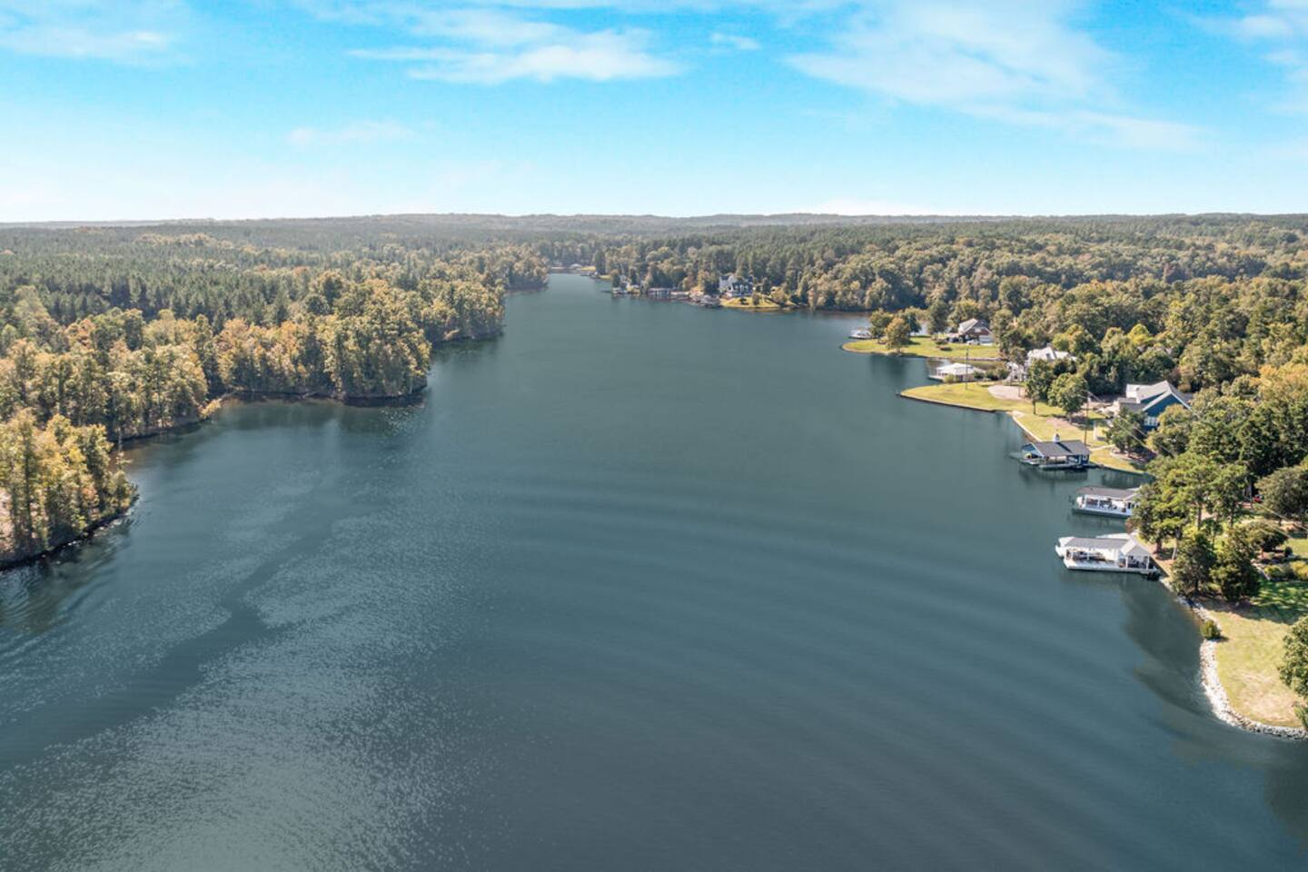 Optional brand new pontoon boat rental, see below for details! Enjoy a spacious 3200+ SF home with one of the best docks and views on the lake! Stunning water view, room for many and everything you need for a romantic weekend or large gathering of family and friends. Be ready to relax on the water - feel free to use the canoe, kayaks, stand-up paddle-boards, and much more! Unobstructed view for over half a mile right in front of the house! Peace and tranquility at its' finest. Close to VIR!